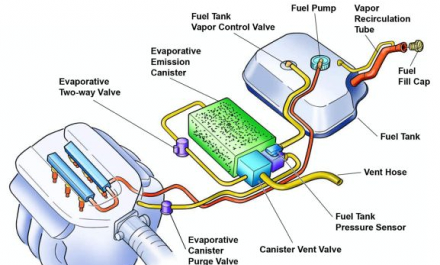 El Canister EVAP: El Canister EVAP (ubicado cerca del tanque o en algún lateral del vano motor) es el depósito encargado de almacenar los vapores provenientes del tanque a través de la válvula de vapor y las cañerías. Internamente consta de un filtro que permite el ingreso de aire y su elemento principal es el Carbón activado, una cantidad suficiente de este elemento de gran superficie porosa permite almacenar todos los vapores generados incluso cuando el vehículo está expuesto por largos periodos a los rayos del sol.